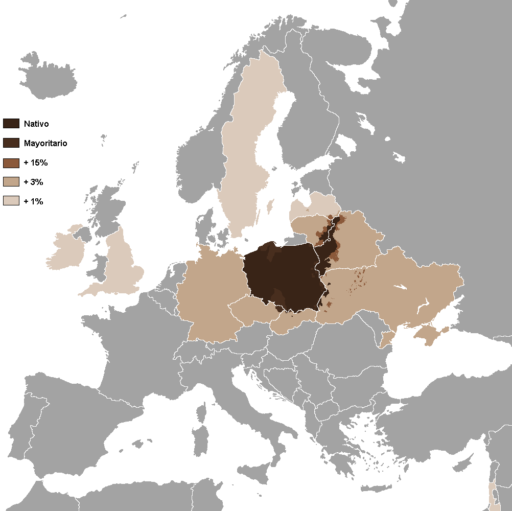 Oversikt over kunnskap om det polske språket i Europa.